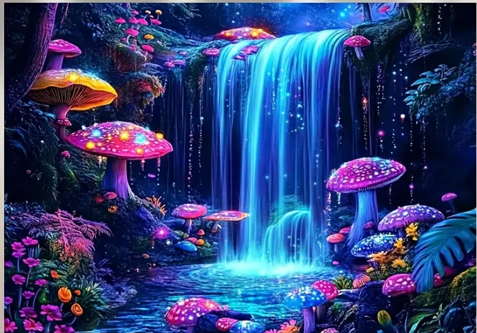 Levendig Paddenstoelenbos UV Zwartlicht Wandtapijt - Magisch Landschap Feestachtergrond, Fotohokje Achtergrond, 99.06x149.86cm-208.28x299.72cm, Polyester Materiaal, Perfect voor Bruiloften, Verjaardagen & Evenementen, Feestelijke Decoratie | Levendige Tapisserie | Lichtgevende Elementen